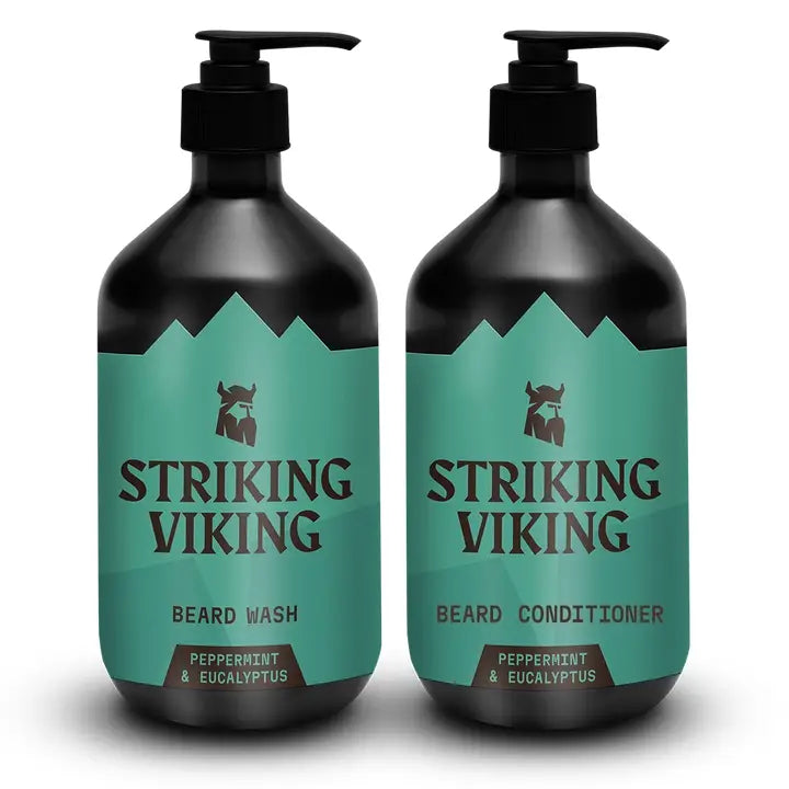 Experience a great lather and invigorating scent with the Striking Viking Beard Wash & Conditioner Set! This natural blend of peppermint and eucalyptus essential oils delivers a remarkable cleanse and condition to give you the handsome, healthy beard you deserve!